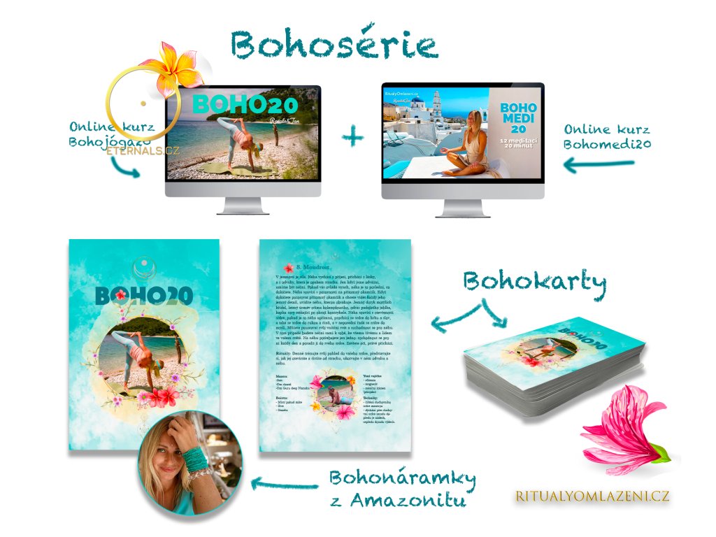 Bohokarty jsou součástí Bohosérie, stejně jako dva online kurzy Bohomedi20 a Bohojóga20 a Bohonáramky.