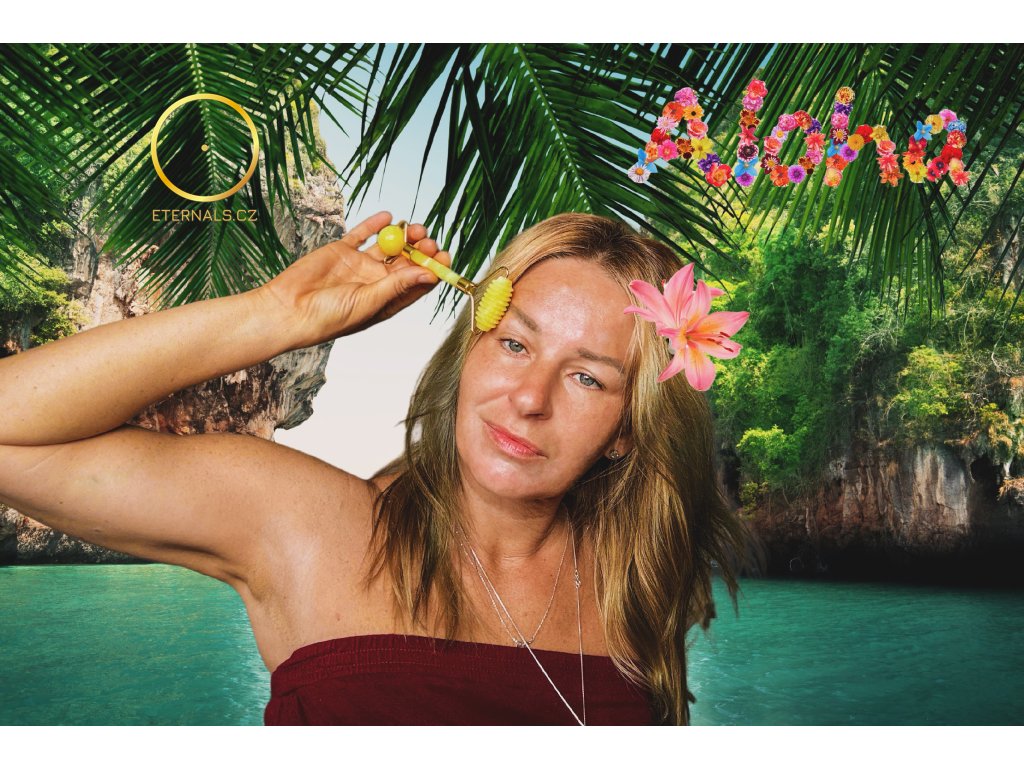 Rollerbooster ALOHA ve studenožluté barvě vás nabije nádhernou tachyonizovanou energií a přitom vám aktivuje kolagen a detoxikuje obličej. Nazvali jsme ho ALOHA BOOSTER. Aloha je havajské slovo, které znamená láska a skládá se ze dvou slov: Alo=sdílení a Ha=vdechnutí života. Aloha znamená spirituálně daleko více, protože Hawaii je centrem 2. čakry přestupu do Nové Země. Mantra k masáži obličeje tímto tachyonizovaným boosterem je jasná a vždy s úsměvem a nepopsatelným pocitem radosti v těle: ALOHA! Booster můžete používat kdykoliv a kdekoliv. Doporučujeme provádět masáž obličeje v průběhu dne co nejdéle u jakékoliv klidové činnosti, případně jej mít u sebe v kabelce a v každé volné chvíli boostovat svůj obličej. Velmi jej doporučujeme k 7. stupňové omlazující masáži obličeje, jako první nebo druhý krok, a jako podklad se nejvíce hodí druhá žlutá: Balzám z divokého citronu.