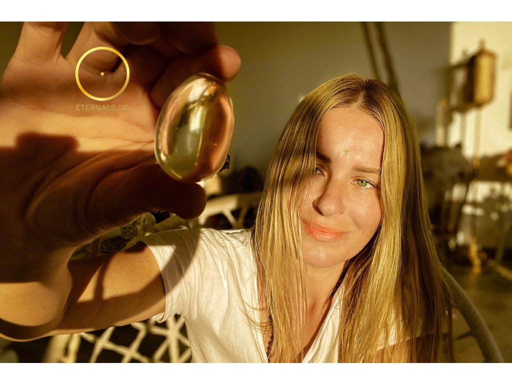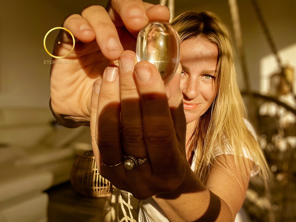 Tachyonizované yoni vajíčko vyrobené z roztaveného křišťálu (melted crystal). Křišťál funguje jako zesilovač energie, vodič a dobře komunikuje a spolupracuje s mantrou omlazení (tu se můžete naučit v online kurzu Omlazující jóga). Vaše biomagnetické pole se v případě, že držíte v ruce křemen, zdvojnásobí. Křemen je vybaven rovněž schopností rozpouštět karmickou setbu. Zvyšuje duševní schopnosti a naladí vás k duchovnímu účelu, pro nějž jste vybráni. Křemen je nejdokonalejší léčivý kámen a lze jej užít při řešení jakéhokoli problému. Podněcuje činnost imunitního systému a uvádí tělo do rovnováhy.